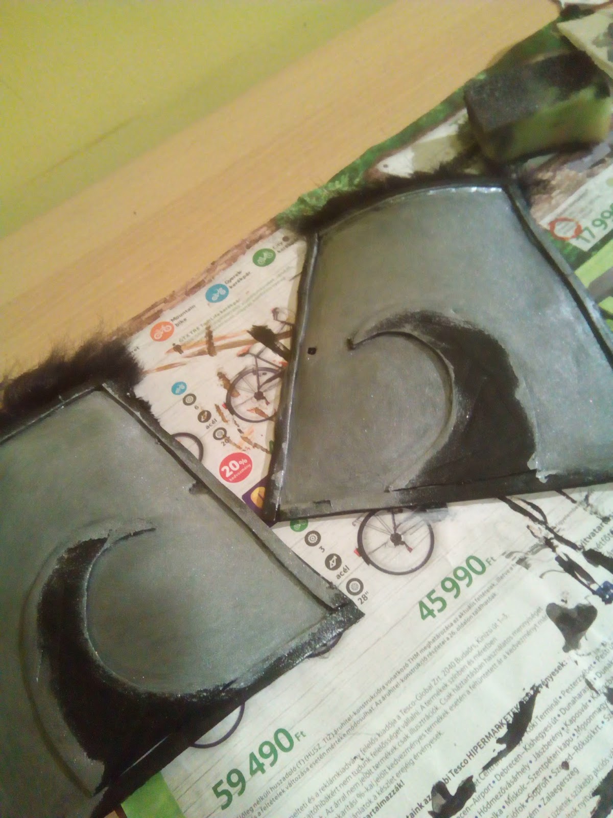 Ezután szintén dekorgumival köre vontam az alapot és ragasztottam rá egy sarló alakú valamit. Már elfogyott a fehérem, szóval ezért lett a sarló fekete. xD